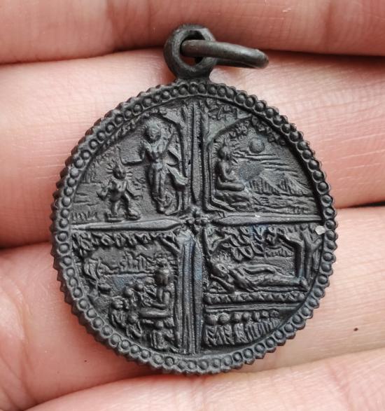เหรียญหล่อพระพักตร์พระพุทธเจ้าหลังประสูติตรัสรู้แสดงธรรมปรินิพพาน |