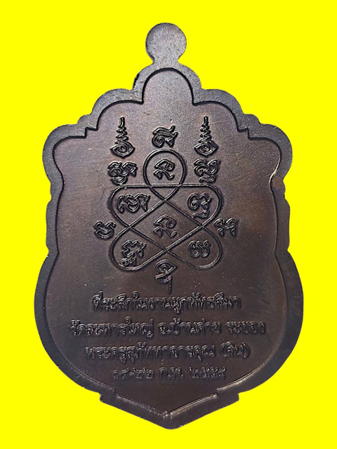 ***เหรียญเสมาที่ระลึกในงานผูกพัทธสีมา เนื้อทองแดงลงยาจีวร หมายเลข 3759 หลวงพ่อสิน วัดละหารใหญ่ ปี 2558 *** |