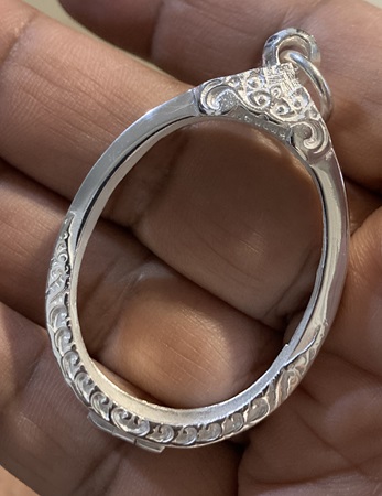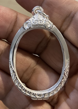 ตลับเงินปัดเงา ทรงรูปไข่ ขนาดขอบใน (กxสxหนา) (2.7 x 3.6 x0.6) Cm.หรือขนาดเหรียญใกล้เคียง |