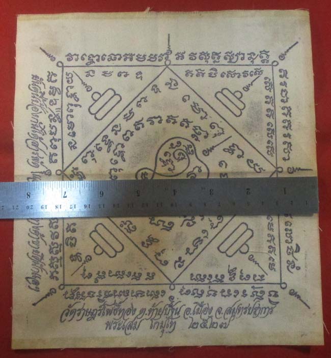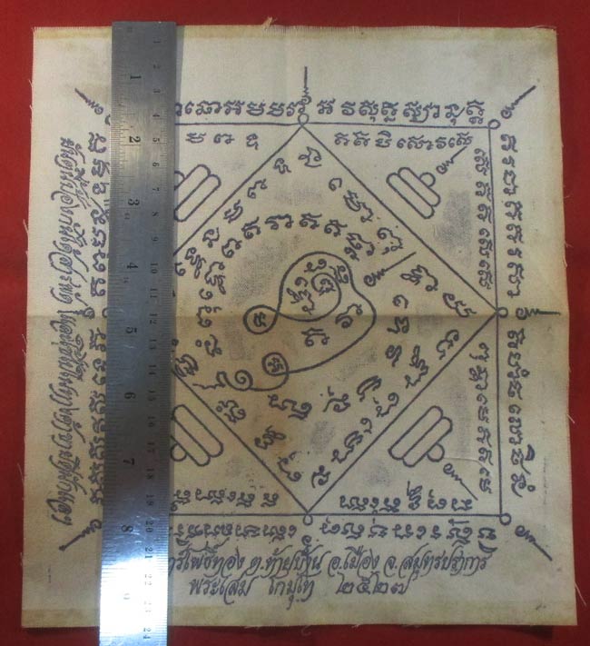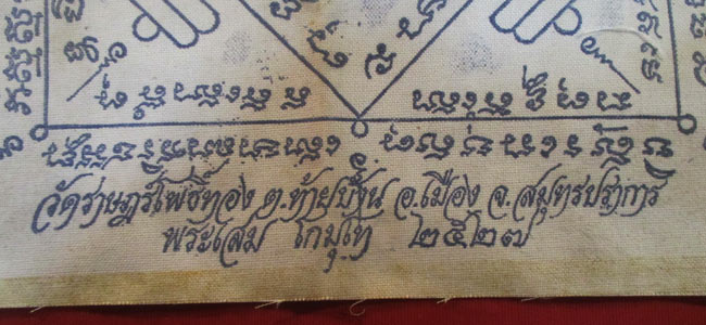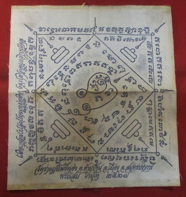 ผ้ายันต์ พระโสม โกมุโท วัดราษฏร์โพธิ์ทอง อ.เมือง จ.สมุทรปราการ ๒๕๒๗ ครับ (พระบ้าน ครับ) |