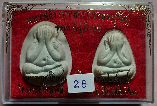 28,เคาะเดียวแดงสบายใจไม่ต้องลุ้นครับ พระปิดตาวัดประดู่ฉิมพลี รุ่นเพชรรุ่งโรจน์ พิมพ์จัมโบ้หลังยันต์นะ ฝังตะกรุดทอง 2 ดอก และ พิมพ์หลังยันต์นะ ตะกรุดเงิน 2 ดอก ปี 2535 ผสมผงเก่าหลวงปู่โต๊ะน่าบูชาครับ |
