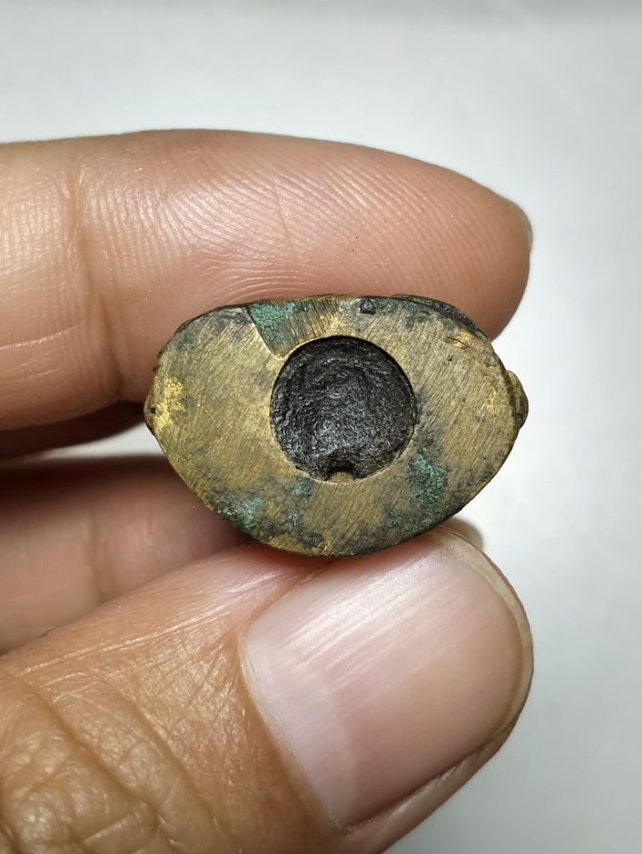เคาะเดียวแดง...พระกริ่งสมาธิ เนื้อทองเหลือง ก้นอุดเทียนชัย ไม่ทราบที่ค่ะ |