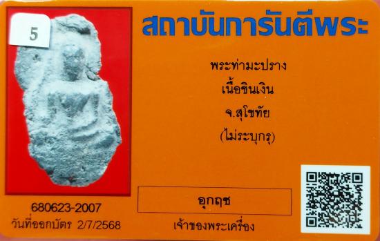 เคาะเดียว พระท่ามะปราง ชินเงิน จ.สุโขทัย พร้อมบัตรรับรองจากจีพระ |