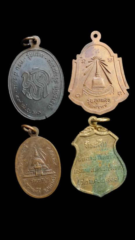 **100.** (4เหรียญ)1เหรียญพระประธานวัดโคกเมรุ อ.ฉวาง ปี2517+1เหรียญพ่อท่านแก้ว วัดเขาปูน นครศรีฯ ปี2529+1เหรียญพระธรรมรัตโนภาส วัดพระมหาธาตุวรมหาวิหาร นครศรีฯ ปี2537+1เหรียญพระครูสถิตธรรมโสภณ(คลิ้ง ฐานวโร)ปี 2521 อาจารย์นำสร้างถวาย**