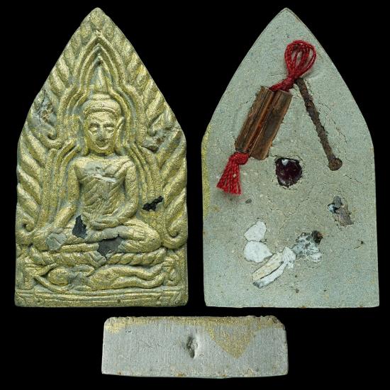 พระขุนแผนอินโดจีน หลวงพ่อชำนาญ วัดชิน เนื้อผงพราย ปิดทอง หลังตะกรุดสาริกาคู่ทองแดง ฝังตะปู พลอยแดง กระดูกใหญ่ๆ สวยมากๆค่ะ