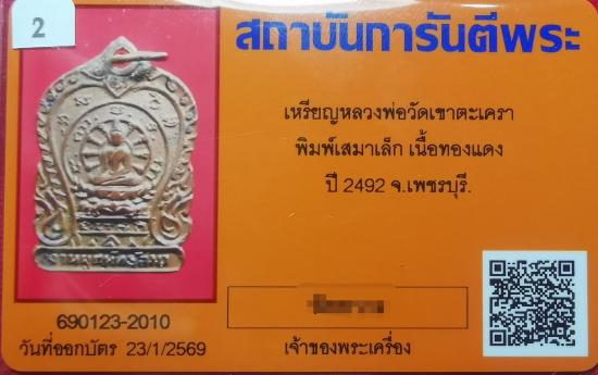 เหรียญเสมาเล็ก ลพ.วัดเขาตะเครา เนื้อทองแดง ปี2492 จ. เพชรบุรี มาพร้อมบัตรรับรอง