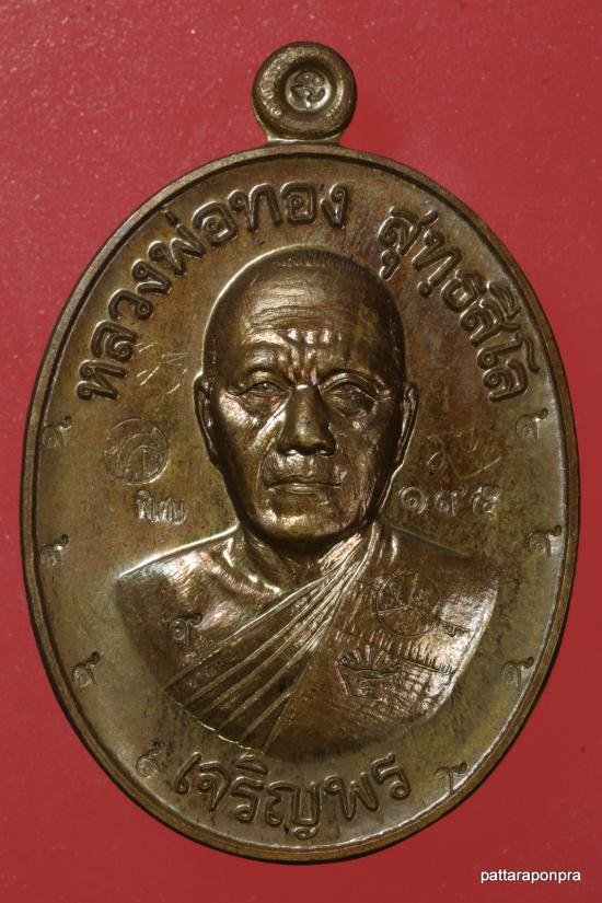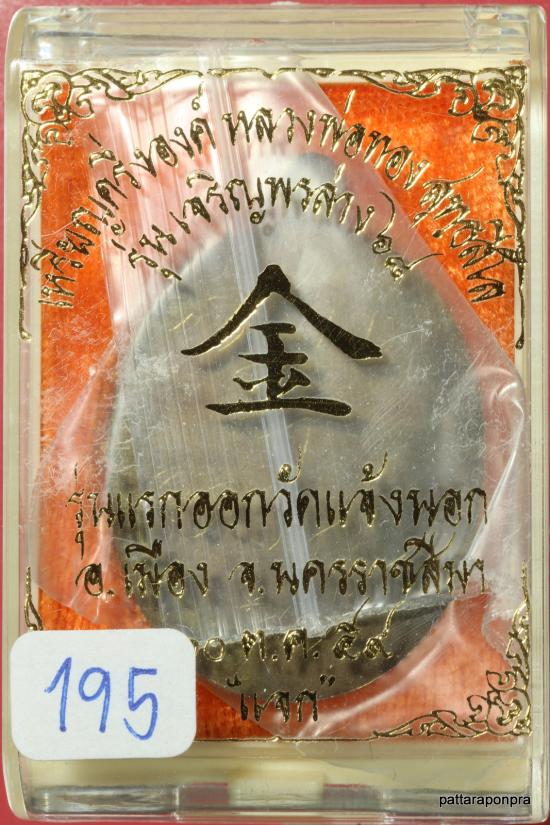เหรียญหลวงพ่อทอง รุ่นเจริญพรล่าง๖๘ ปี 2559 เนื้อชนวนหลังเรียบ ๙รอบมีจารหลวงพ่อทอง หมายเลข 195 |