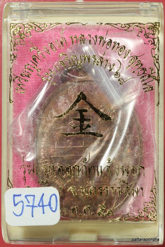 เหรียญหลวงพ่อทอง รุ่นเจริญพรล่าง๖๘ ปี 2559 เนื้อทองแดงมันปู ตอก๙รอบ หมายเลข 5740 |