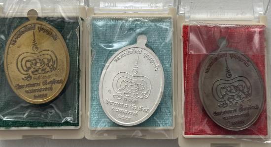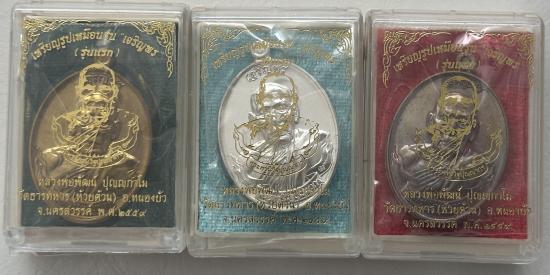 3เหรียญสวยๆ เหรีญเจริญพรรุ่นแรก หลวงพ่อพัฒน์ วัดห้วยด้วน ปี59 (กะไหล่เงินโบราณ+โลหะผสมชนวน+ทองเทวฤทธิ์) |