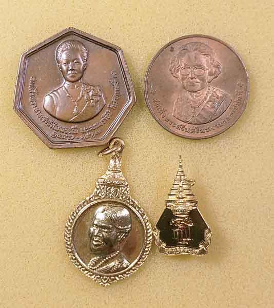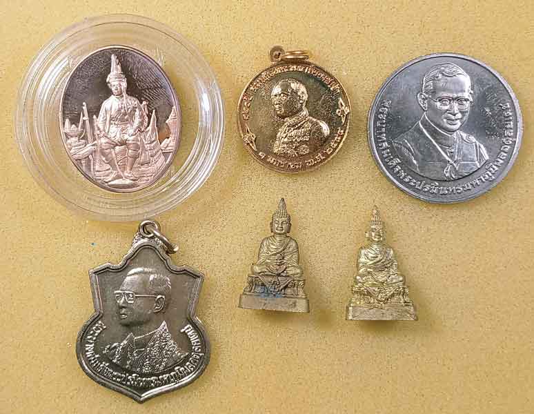 เหรียญร.6 2 เหรียญ + เหรียญร.9 2 เหรียญ +พระพุทธระลึกเจ้าฟ้าเพชรรัตน์ (พร.)80 พรรษา ปี 48 2องค์+สมเด็จพระนางเจ้ารำไพพรรณี +สมเด็จย่า+เหรียญ+เข็มกลัด พระนางเจ้าสิริกิต