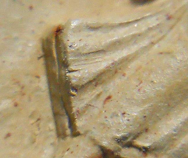 เดือยนูน คือ รอยเนื้อล้น หรือเนื้อทะลัก สำหรับระบายเนื้อส่วนเกินเวลากดพิมพ์ ปกติเดือยนูนจะเป็นเดือยกลมเต็ม อยู่ตรงกลางขอบล่างหรือขอบบน แต่ที่เป็นครึ่งเดือยนูนอยู่ริมขอบพระแบบนี้ ถือเป็นของแปลก ไม่ค่อยได้พบเห็นนัก