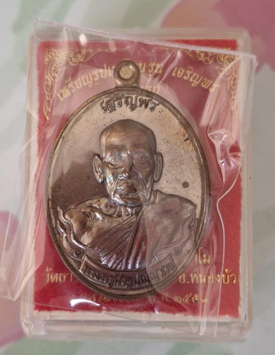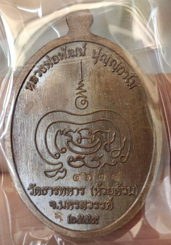 เหรียญหลวงพ่อพัฒน์ วัดห้วยด้วน เจริญพร(รุ่นแรก) ปี ๕๙ เนื้อโลหะผสมชนวน เลข ๔๖๗๔ สภาพจมูกโด่งๆผิวสวยงาม อยู่ในซีลเดิมกล่องเดิม |