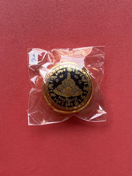 เนื้อ โลหะชุบทองลงยาสีดำขอบสีแดง ขนาด3.2ซม |