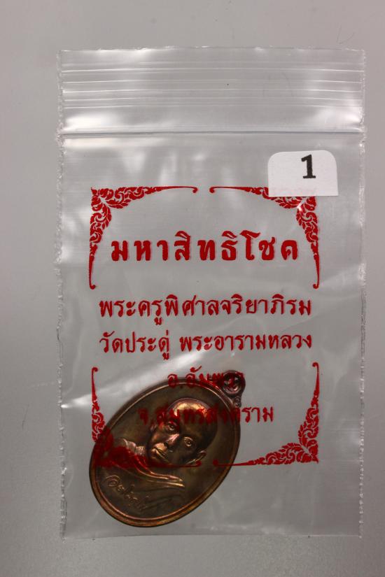 เหรียญเม็ดแตงมหาสิทธิโชค (เหรียญเม็ดแตงรุ่นแรก) พระมหาสุรศักดิ์ วัดประดู่พระอารามหลวง เนื้อทองแดง ซองเดิม |