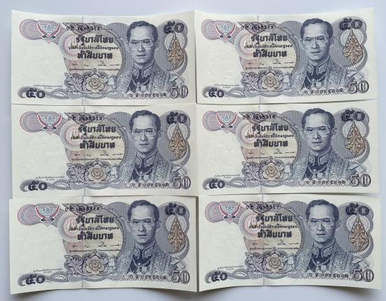 ธนบัตร 50 บาท รัชกาลที่ 9 แบบ 13 ลายน้ำสมเด็จย่า จำนวน 6 ใบ สภาพสวยตามรูป |