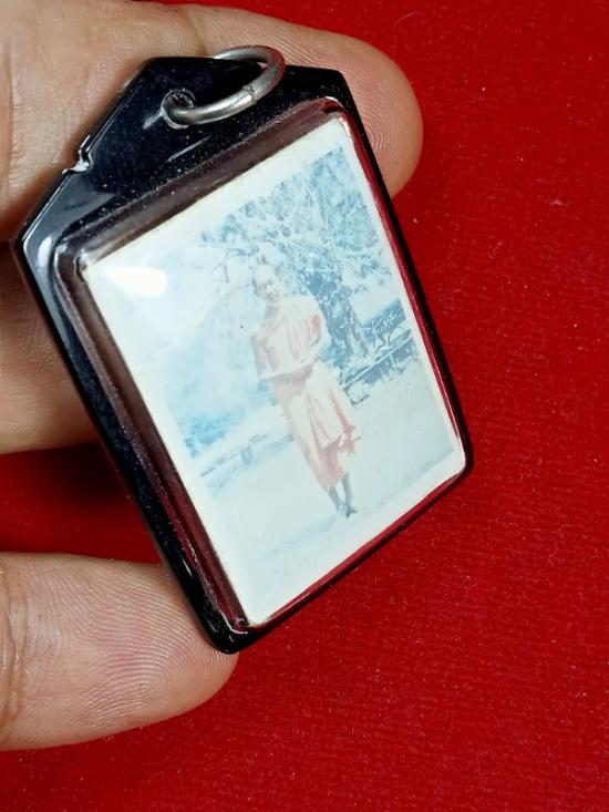 รูปถ่ายยืนหลวงพ่อเกษม เขมโก วัดนางเหลียว สียุคต้นๆ หลังแผ่นตะกรุด