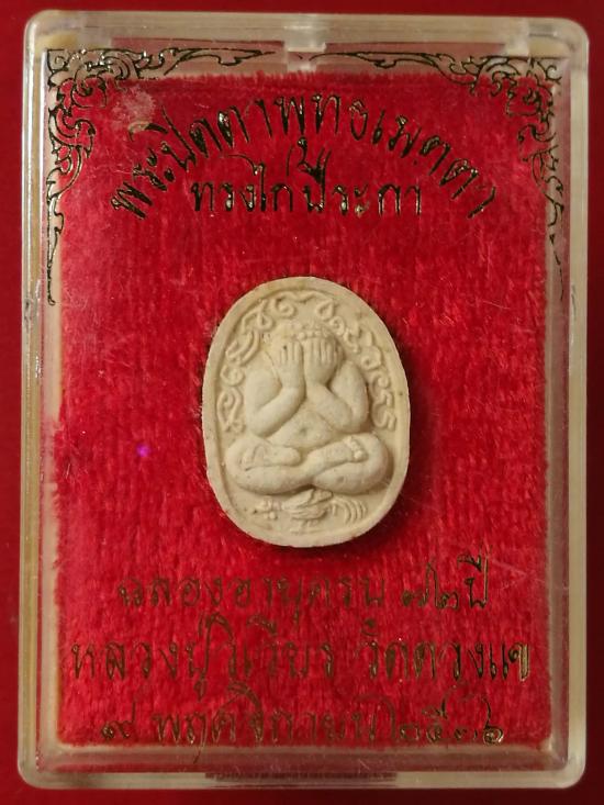 พระปิดตาพุทธเมตตา ทรงไก่ปีระกา เนื้อผงพุทธคุณ หลวงปู่วิเวียร วัดดวงแข ปี ๒๕๓๖ พร้อมกล่อง