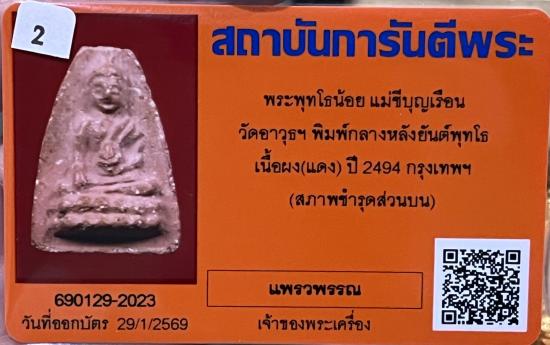 พระพุทโธน้อยพิมพ์กลางเนื้อผงสีแดง(ปูนเสก)นิยมปี2494วัดอาวุธ.คุณแม่บุญเรือน |