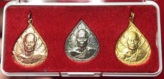 เหรียญหยดน้ำหลวงพ่อจ้อย วัดศรีอุทุมพร นครสวรรค์ รุ่นกตัญญู ปี 2540 เนื้อเงิน เนื้อกะไหล่ทอง เนื้อกะไหล่นาค (ชุดกรรมการ) ตอกโค้ด พร้อมกล่องเดิมครับ |