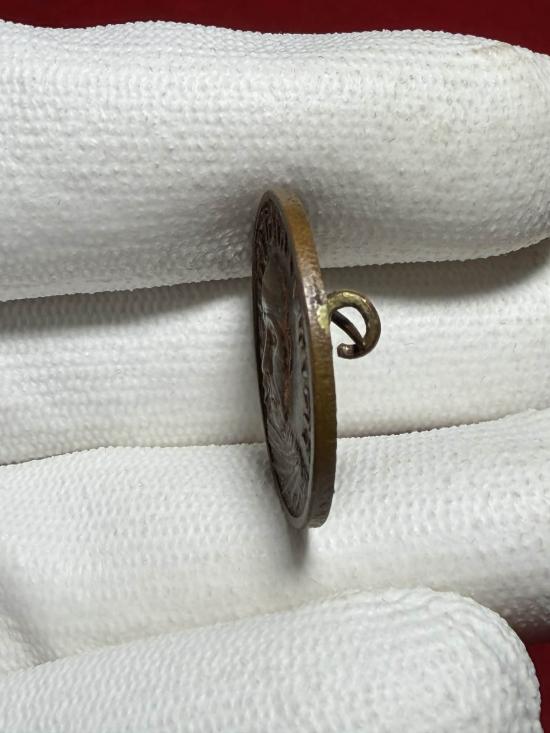 เหรียญเข็มกลัด พระครูวิจิตรอาจารวัตร วัดกลางอ่างแก้ว ปี 2499 จ.นนทบุรี