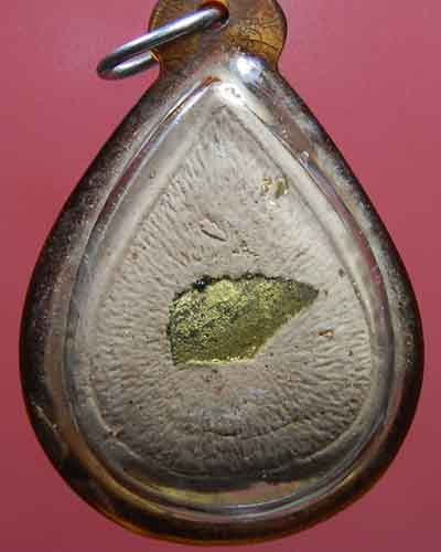 มวลสารมหามงคล ... หลวงพ่อวัดไร่ขิง หล่อหยดน้ำเนื้อผงทองพิเศษ รุ่นบูรณะศาลาการเปรียญ 2532 *** หลังแผ่นหนังหลวงพ่อวัดไร่ขิง *** ... เลี่ยมวินเทจ