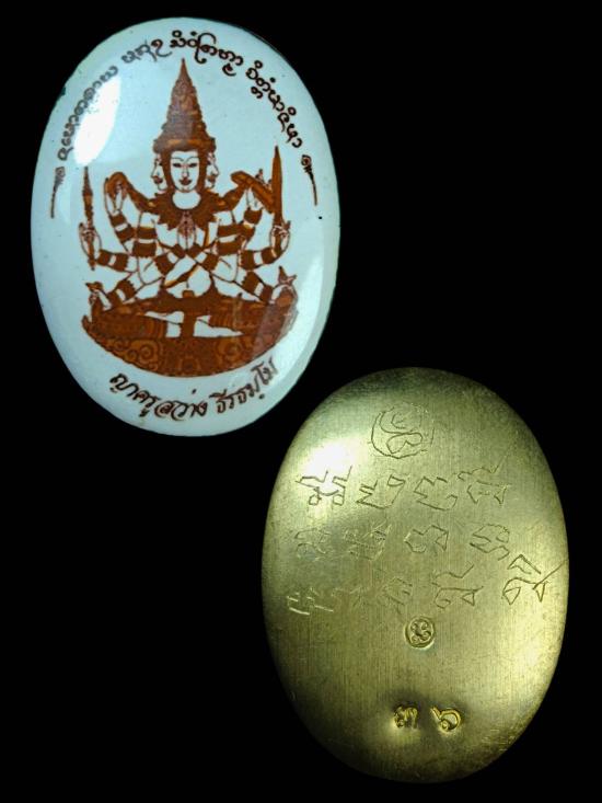 วัดใจ ล็อกเก็ตท้าวมหาพรหมหานิตะ ฉากขาว ญาครูสว่าง ธีรธมโม พิมพ์ใหญ่ หลังจารยันต์ ตอกโค๊ต+หมายเลข 36