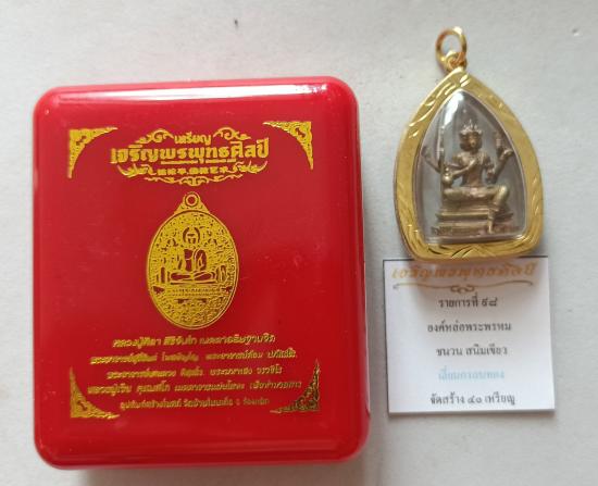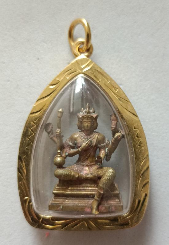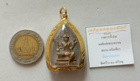 วัดใจเคาะเดียวแดงจ้า รูปหล่อพระพรหม หลวงปู่ศิลา เนื้อชนวนสนิมเขียว เลี่ยมกรอบทองไมครอน เคาะเดียวแดงจ้า |