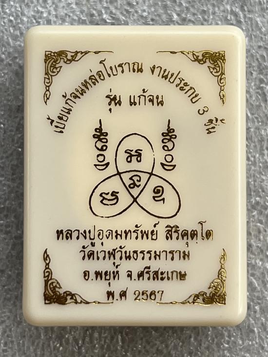 เบี้ยแก้หล่อโบราณงานประกบ 3ชิ้น รุ่นแก้จน หลวงปู่อุดมทรัพย์ วัดเวฬุวันธรรมาราม ศรีษเกษ ปี67 เดิมๆพร้อมกล่อง