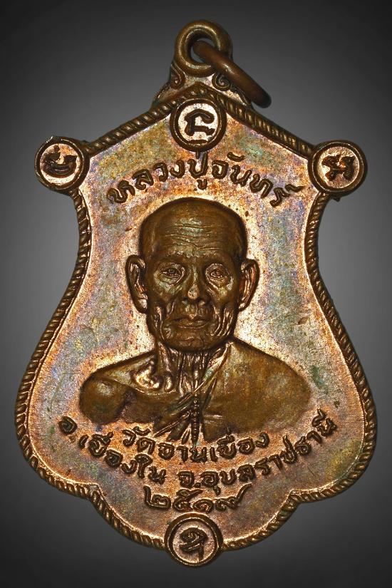เหรียญหลวงปู่จันทร์ วัดจานเขื่อง อุบลราชธานี ปี 19 เนื้อทองแดงผิวไฟสวยเดิมๆคับ |