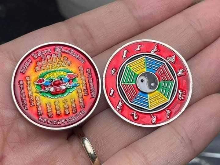 เหรียญกันชง8ทิศ เนื้อเงินลงยา ลุ้นเลขสวยๆ ไม่แกะซีน