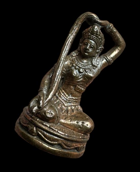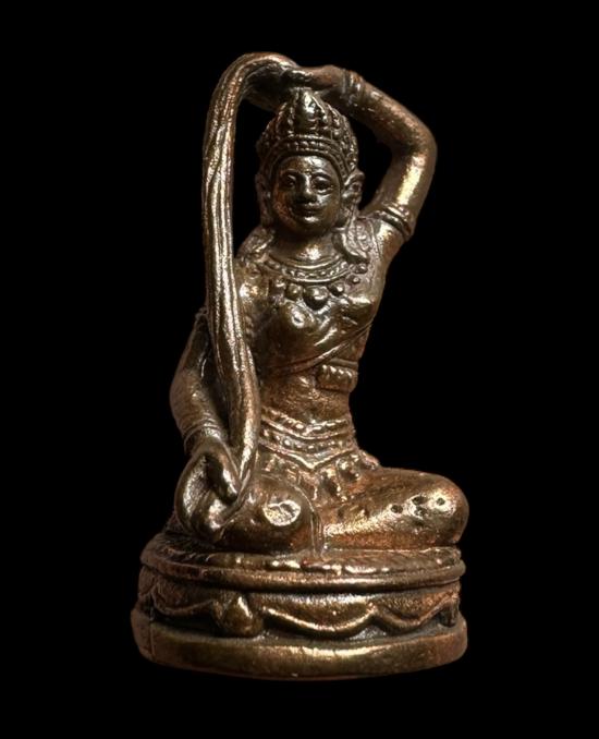 หลวงปู่หงษ์ พระแม่ธรณี รุ่นแรก เนื้อสำริด ปี 2549 พร้อมซองเดิม ตอกโค๊ตตอกหมายเลขใต้ฐาน |
