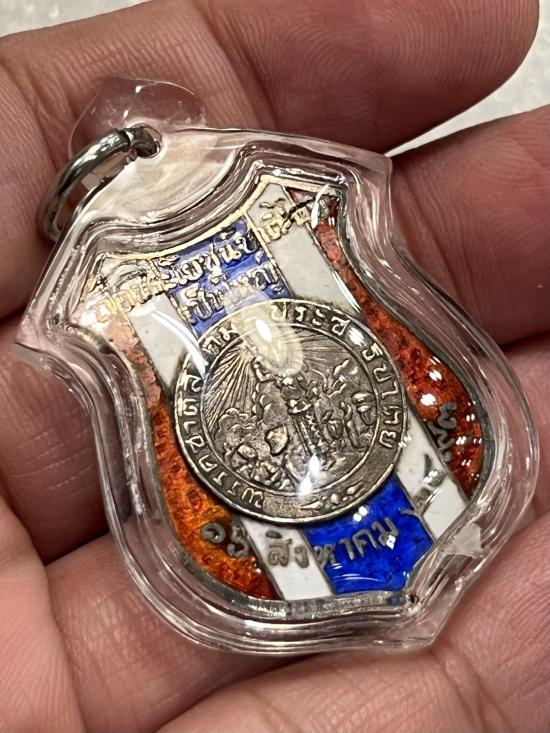 เข็มกลัดเงินลงยาลายธงชาติ ถือประโชยข์ชาติไทยเป็นใหญ่ 12 สค 2493 พรรคชาติสังคมประชาธิปไตย |