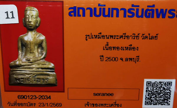 พระกริ่งรูปเหมือนพระศรีอาริย์ วัดไลย์ รุ่นแรก เนื้อทองเหลือง ปี2500 จ.ลพบุรี + บัตรG-pra สภาพเดิมค่ะ |