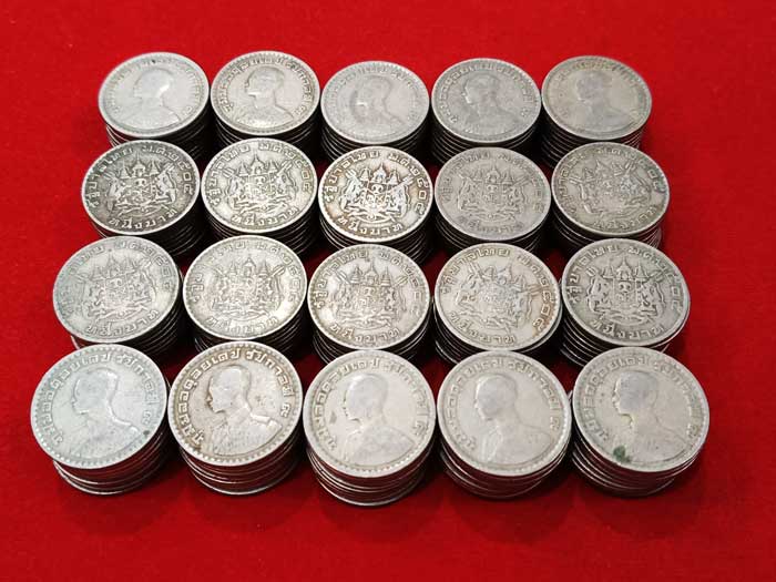 วัดใจ 100 เดียวแดง ++ เหรียญ 1 บาท หลังตราแผ่นดิน ปี2505 สภาพผ่านใช้งาน รวม 200 เหรียญ