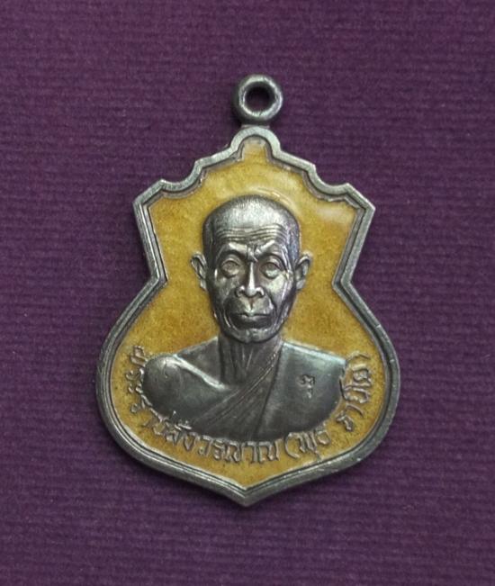 เหรียญอาร์ม เนื้อเงินลงยาเหลือง หลวงพ่อพุธ วัดป่าสาลวัน โคราช ปี๓๗ |