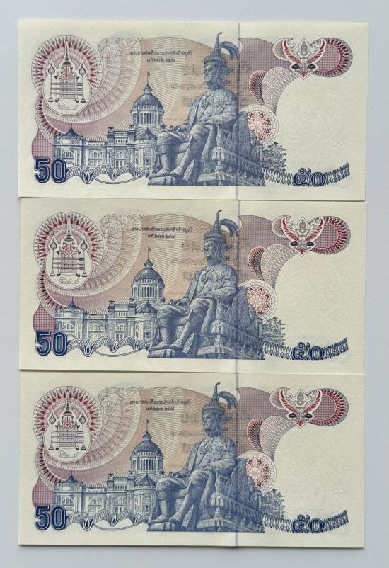 ธนบัตร 50 บาท รัชกาล 9 ลายน้ำสมเด็จย่า จำนวน 3 ใบ สวยเดิมๆๆ |