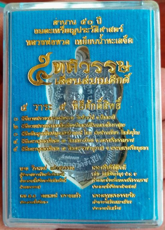 เหรียญเลื่อนสมณศักดิ์หลวงปู่ทวดปี 58 เนื้อตะกั่วไม่ตัดปีก (ชุดเนื้อเงินหน้ากากทองคำ) ตอก Number 970 พร้อมกล่องเดิมสภาพสวย