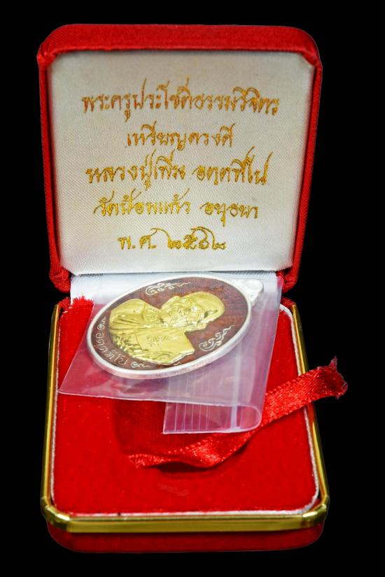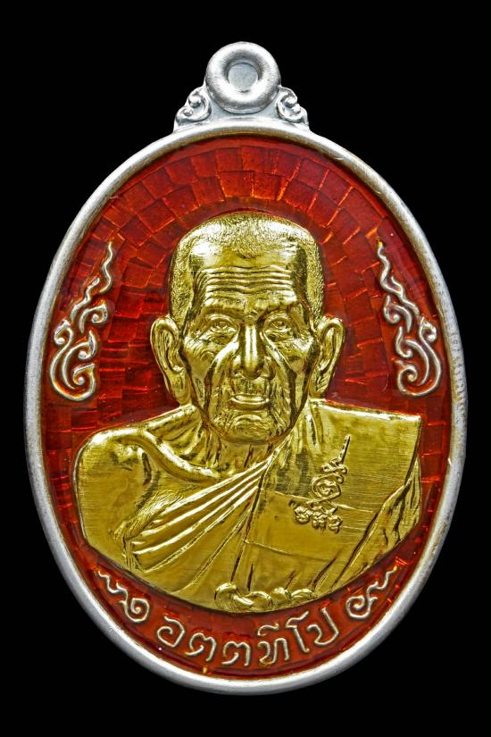 เหรียญดวงดี หลวงพ่อเพิ่ม วัดป้องแก้ว ปี2562 เนื้อเงินลงยาแดงหน้ากากทองคำ No.1177 พร้อมกล่อง (สวยเดิม ไม่ผ่านการใช้)