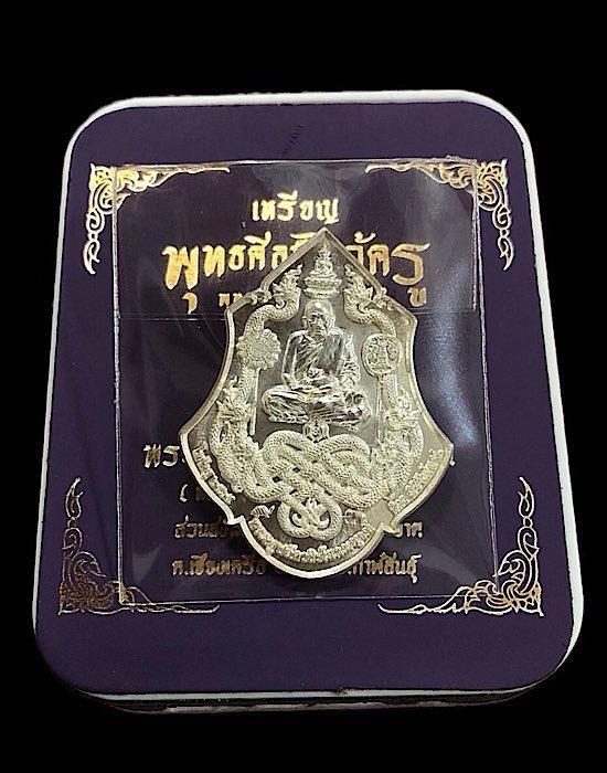 หลวงปู่มหาศิลา ไหว้ครู65 เนื้อเงิน หลังมวลสารติดเกศา เลข392 จมูก100 กล่องเดิม ผิวสวย