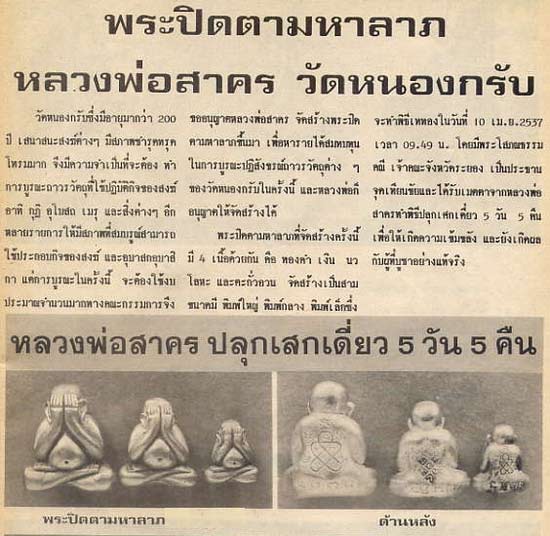 พระปิดตามหาลาภ หลวงพ่อสาคร วัดหนองกรับ เนื้อเงิน พิมพ์กลาง ปี37