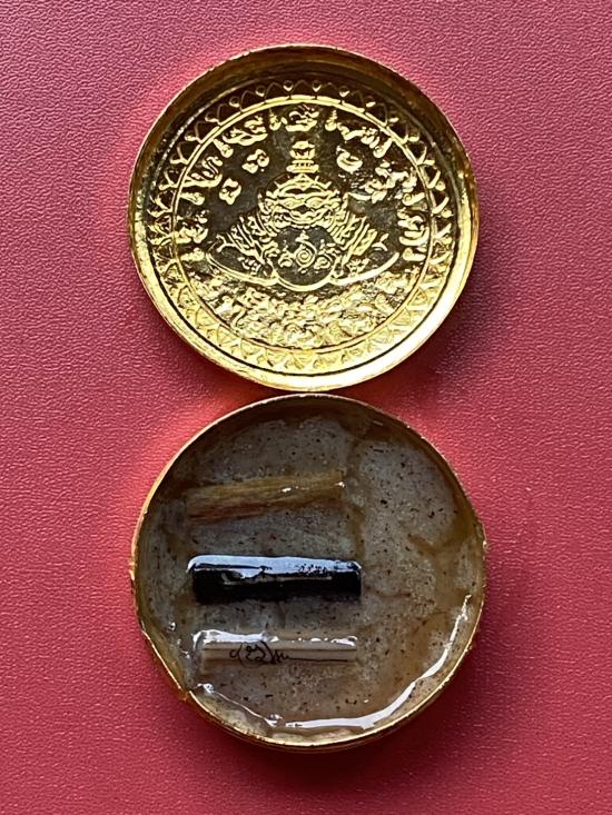เคาะเดียวแดง สีผึ้งพระราหู รุ่น มงคลจักรวาล เนื้อ โลหะชุบทองลงยาสีดำขอบสีดำ ขนาด 5ซม |