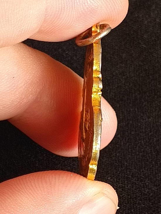 เหรียญไวโอลินหลวงพ่อผาง วัดอุดมคงคาฯ ปี2520 เนื้อทองแดงกะไหล่ทอง ลงยา รุ่นสร้างเจดีย์