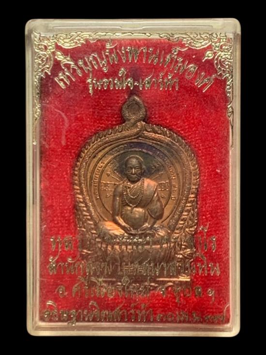เหรียญนั่งพานหลวงปู่พรหมมา เนื้อทองแดง สภาพสวยๆเดิม กล่องเดิม |