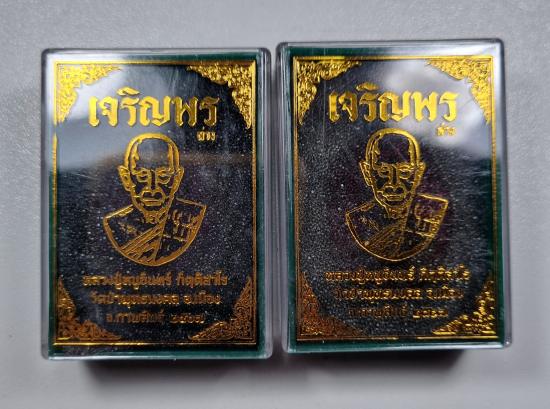 เจริญพรล่าง หลวงปู่หนูอินทร์ วัดป่าพุทธมงคล เนื้ออัลปาก้าลงยา 2เหรียญ |