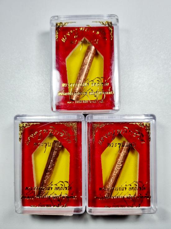 ตะกรุดหนุมาณเชิญธง แรงครูพลิกชีวิต พระอาจารย์แจ้ เนื้อทองแดงกรรมการ3ดอก พร้อมกล่อง |