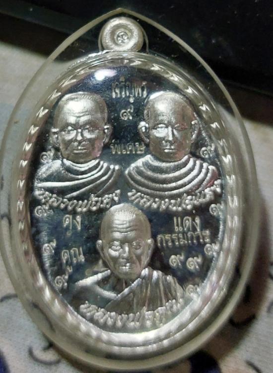 เหรียญสามคณาจารย์ หลวงพ่อคง หลวงพ่อแดง หลวงพ่อคูณ รุ่นโชคดี เนื้อเงิน ๙รอบ เลข ๙๙ วัดถนนหักใหญ่ ปี ๒๕๕๕