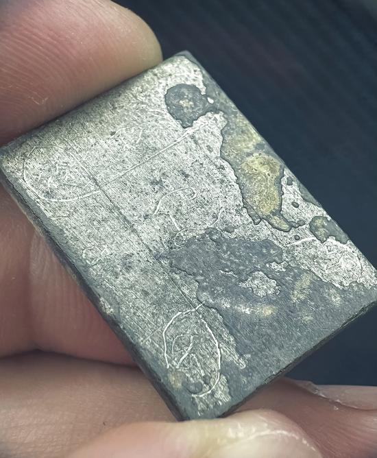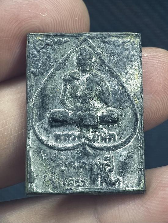 เหรียญหล่อ เนื้อตะกั่วเถื่อน พิมพ์เล็ก หลังจารมือ หลวงปู่นิล วัดครบุรี |