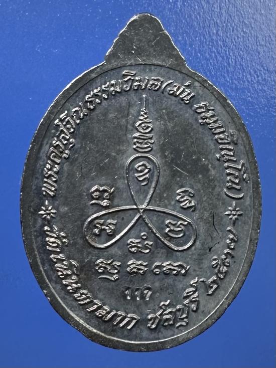 เหรียญเนื้อเงินลงยาแดง หลวงพ่อม่น วัดเนินตามาก จ.ชลบุรี ปี 2537 เลขสวย 117 |