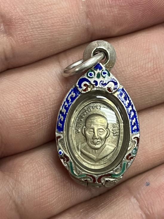 เหรียญเม็ดแตง หลวงปู่ทวด วัดช้างให้ ปี 2508 เนื้ออัลปาก้า สภาพใช้ เลี่ยมตลับเงิน