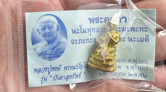 หลวงปู่หงษ์ กุมารพ่วงเพชร รุ่น บันดาลทรัพย์ ปี 2552 เนื้อทองลำอู่ พร้อมซอง ตอกโค๊ตใต้ฐานครับ |
